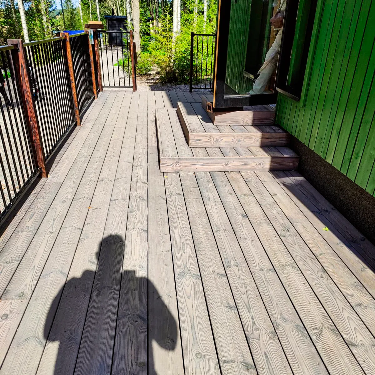 All decking products weather over time under the influence of the sun's UV radiation. Pigmented products – Noki, Kelo, Kaarna+ and Ruska – retain their colour noticeably longer than the unpigmented Kaarna, which greys almost completely over time. If you want to preserve the original colour as long as possible, you can oil more frequently – it won't harm the surface; if anything, it helps.