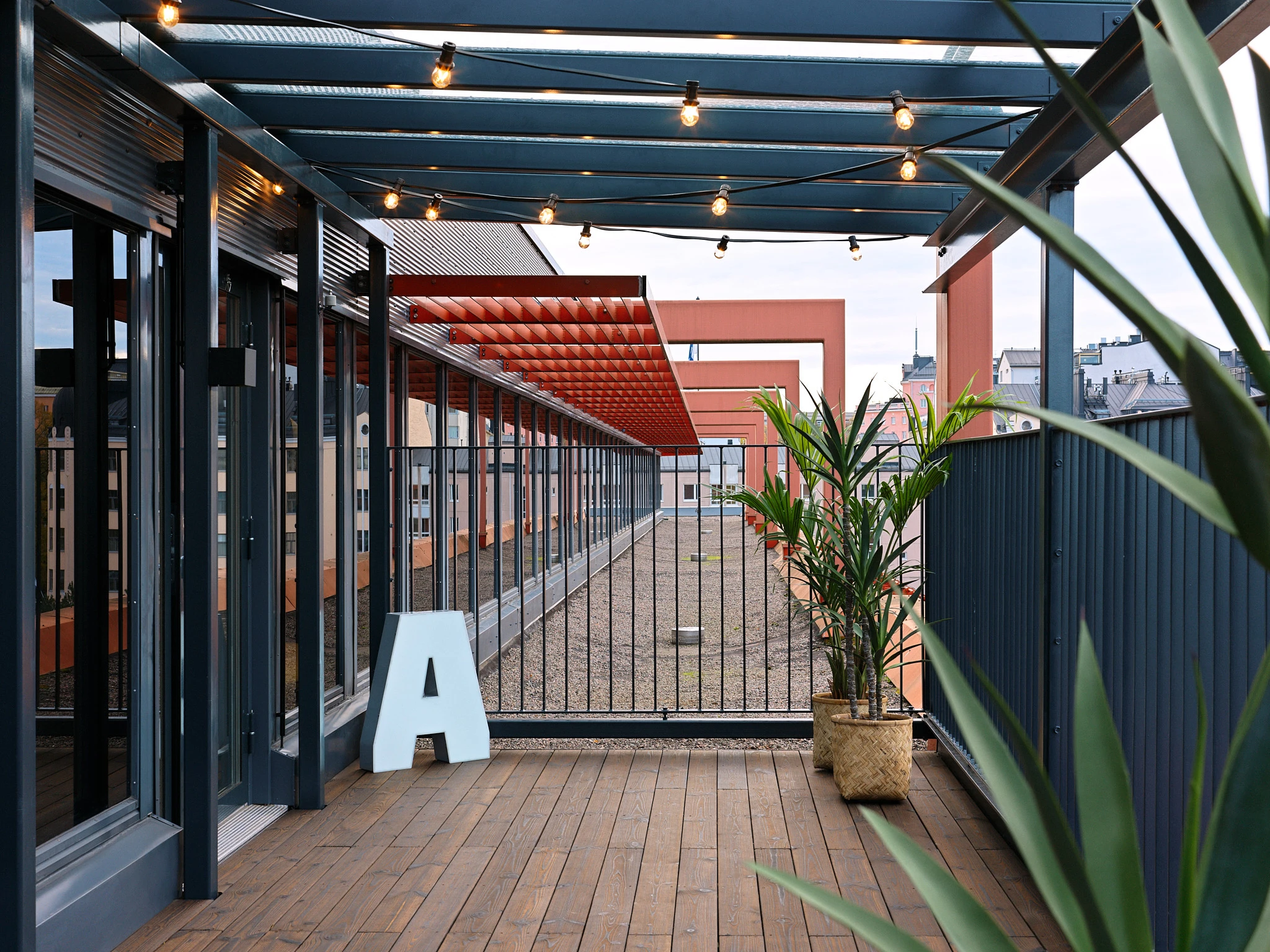 Kattoterassi on ympäristönä armollinen ja vaativa samaan aikaan. Se on osin suojassa, mutta silti ulkona. Juuri siksi Kaarna sopii siihen hyvin. Kun terassi on säältä suojattuna ja pinta pidetään öljyttynä, se pysyy pitkään siistinä ja käytännöllisenä, ja ajan myötä se saa ulkotilalle luontevan, rauhallisen patinan.