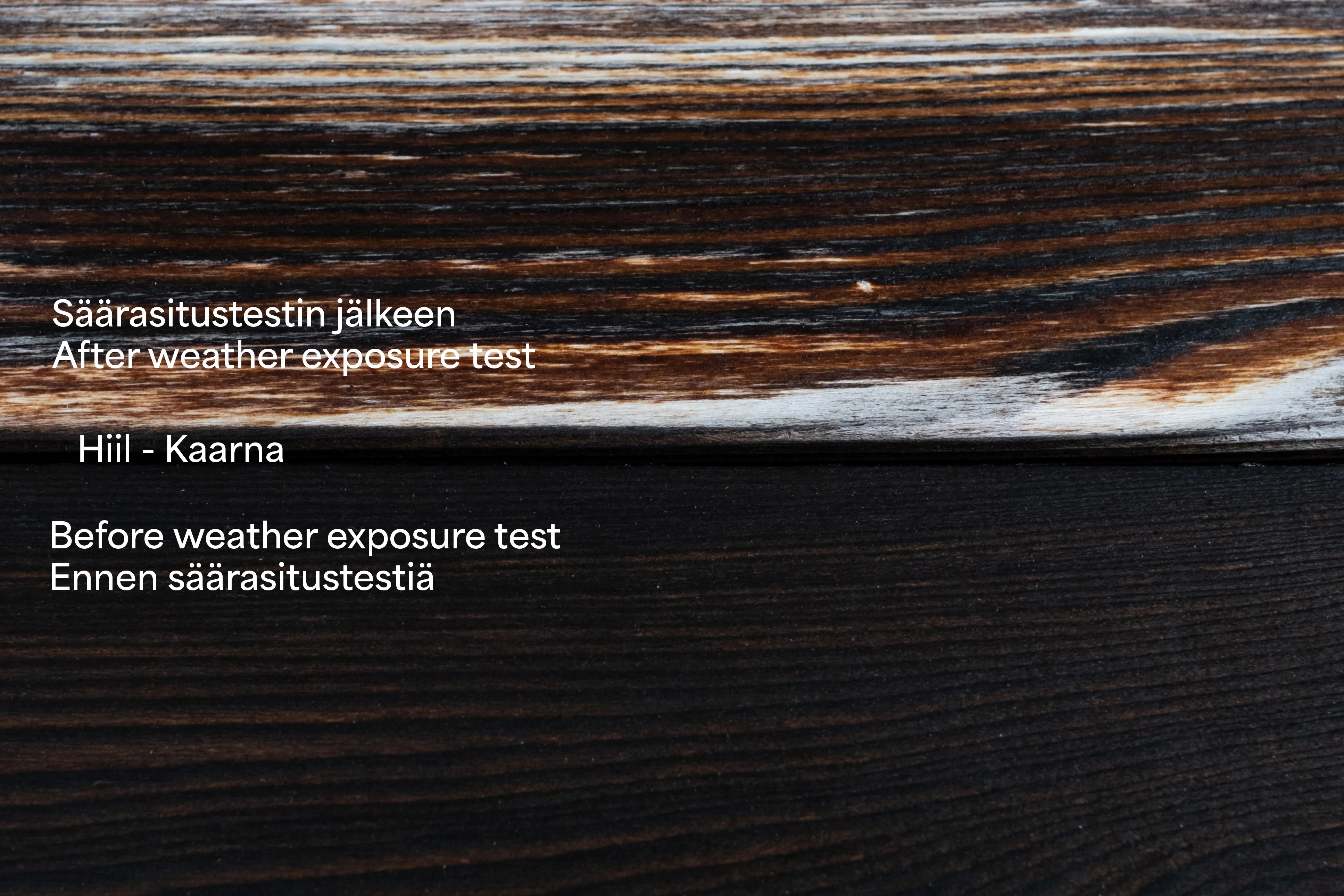Hiilletyn puun säärasitustesti Hiil Oy:n tuotteille